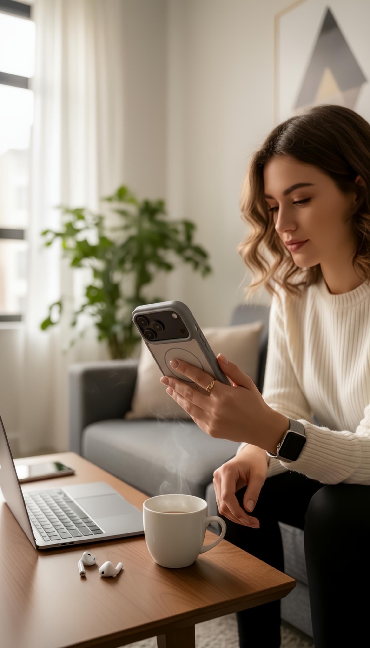 Con adherencia magnética 9/10, Smooth se acopla de forma estable a cargadores y accesorios MagSafe, para una carga y uso sin interrupciones. Ideal para quienes usan múltiples accesorios magnéticos a diario.